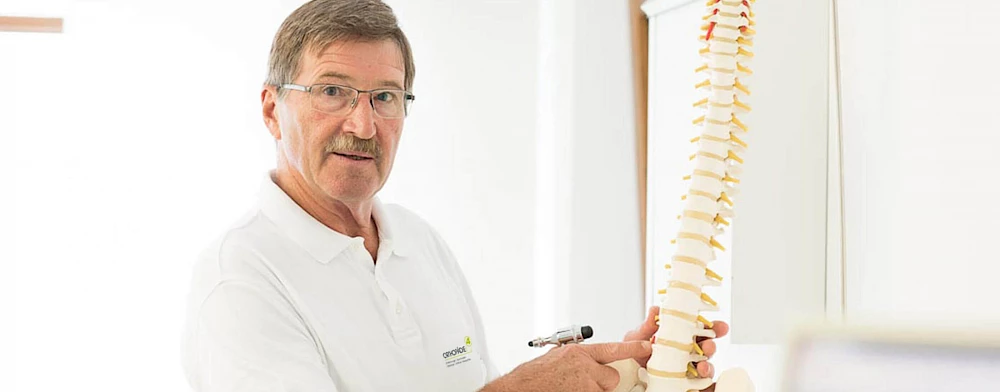 Der aufrechte Gang! Statistisch hat jeder Mensch einmal im Jahr Rückenbeschwerden. Häufig auftretende Schmerzen mit Muskelverspannungen, Bewegungseinschränkung und Ausstrahlung sind dagegen nicht die Regel. Die Wirbelsäule hat eine komplexe knöcherne Struktur mit über 100 Gelenken und ein komplexes Zusammenspiel von Wirbelkörper, Wirbelbogen, Bandscheibe, Bändern sowie zahlreichen Gefäßen und des Hauptnervenstranges. Dadurch kann es immer wieder Probleme hier geben. Gerade die sog. segmentale Versorgung, d.h. das jeder Nerv an seiner zugehörigen Etage in der Wirbelsäule entspringt und von dort in die Versorgungsbereiche zieht, erklärt warum Störungen der Wirbelsäule auch zu Problemen in weiter fort gelegenen Orten des Körpers führen können. Häufig sind aber auch sog. funktionelle Störungen die Ursache. Durch Fehlstellungen und Muskelverspannungen kommt es zu Bewegungseinschränkungen und es kann zu Ausstrahlungen kommen, die in der Regel gut für eine entsprechende konservative Therapie zugänglich sind.