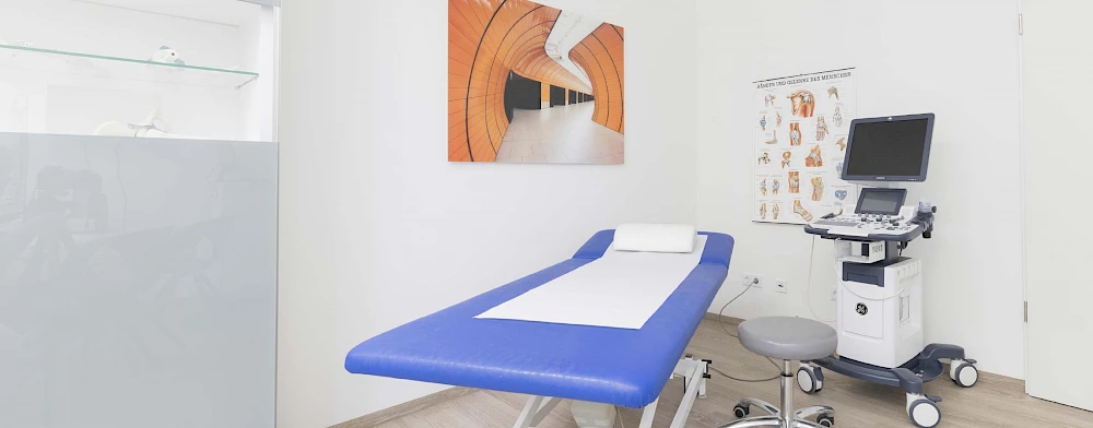 Ultraschalldiagnostik (meherere Ultraschallgeräte mit 10 – 13 MHz mit Power-Doppler-Funktion)
